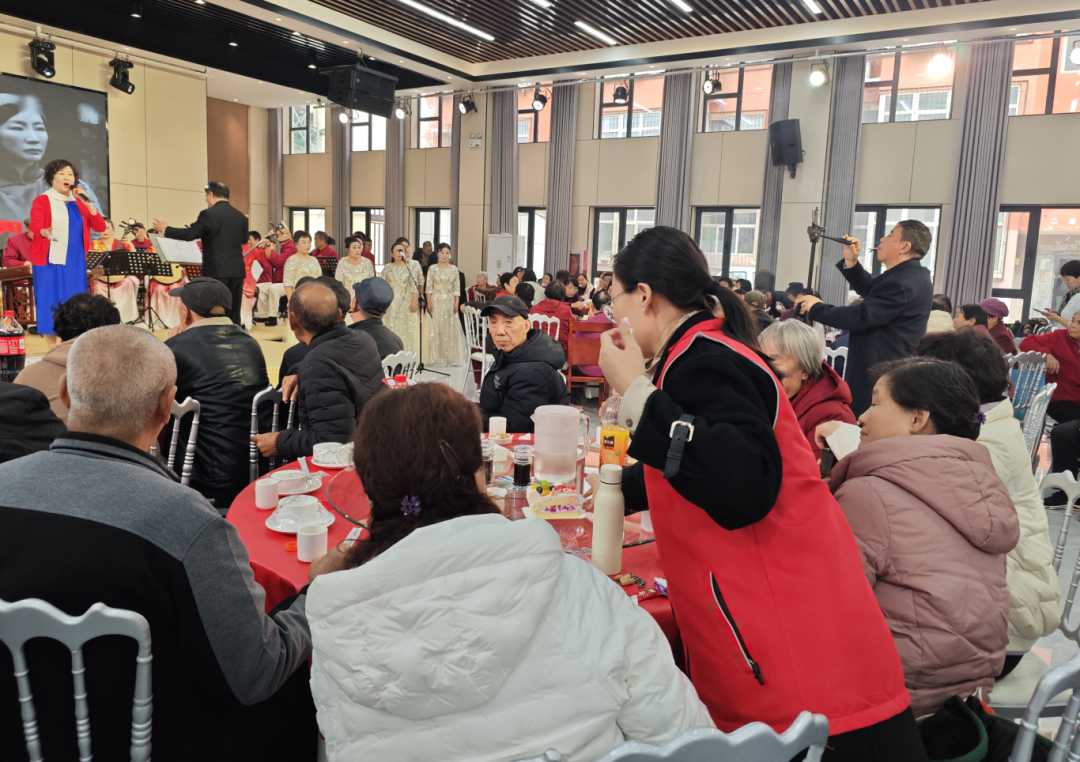 活動最后,社區老人們歡聚一堂,共進溫馨的午宴。席間,志愿者們就老年人身體狀況和生活情況與他們進行了交談,傾聽老年人心聲,用真摯交流傳遞溫暖,并再次送上節日的誠摯祝福。