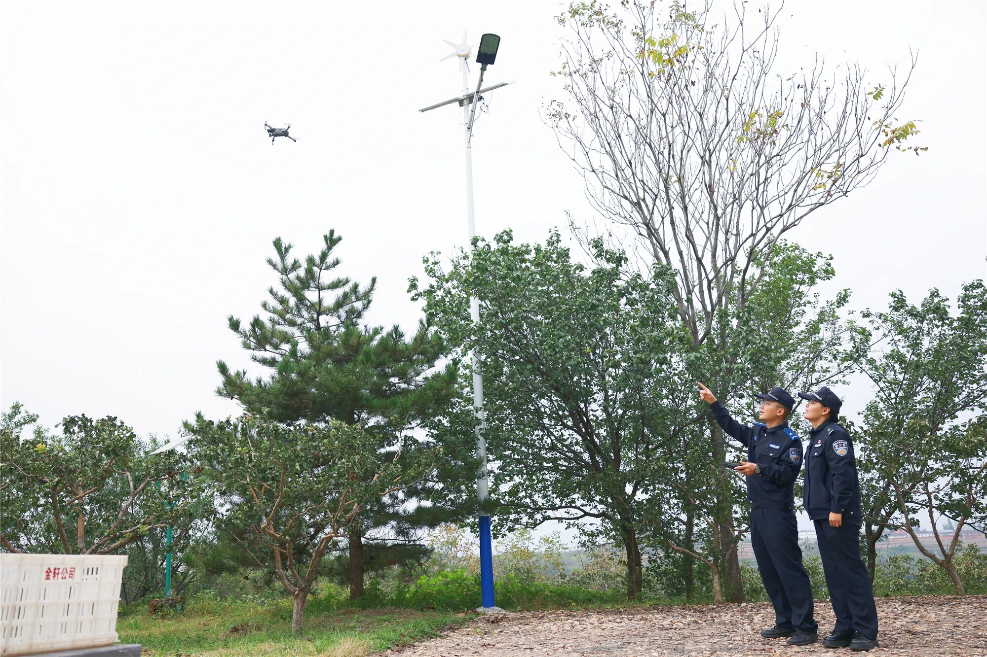 “天上飛‘電子警察’,地上閃紅藍警燈,咱這山楂從枝頭到貨車都踏實。”果農尹某指著無人機感慨。