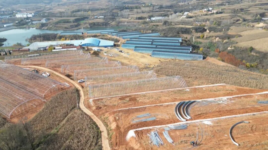 ????在五彩椒小鎮項目建設現場,工人們相互協作,正進行固定鋼架、覆蓋防鳥網等大棚建設工作,一派熱火朝天的“冬忙”景象。該項目共計劃建設64座高標準日光溫室大棚,現已建設完成14座,眼下正在搶抓工期,進行最后收尾工作。